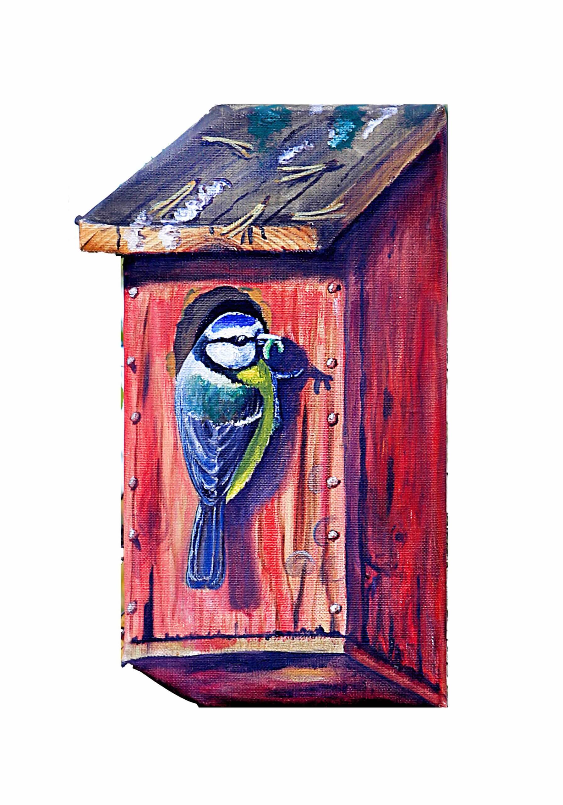 Holk med blåmes som matar ungar, efter originalmålning av Timo Horne