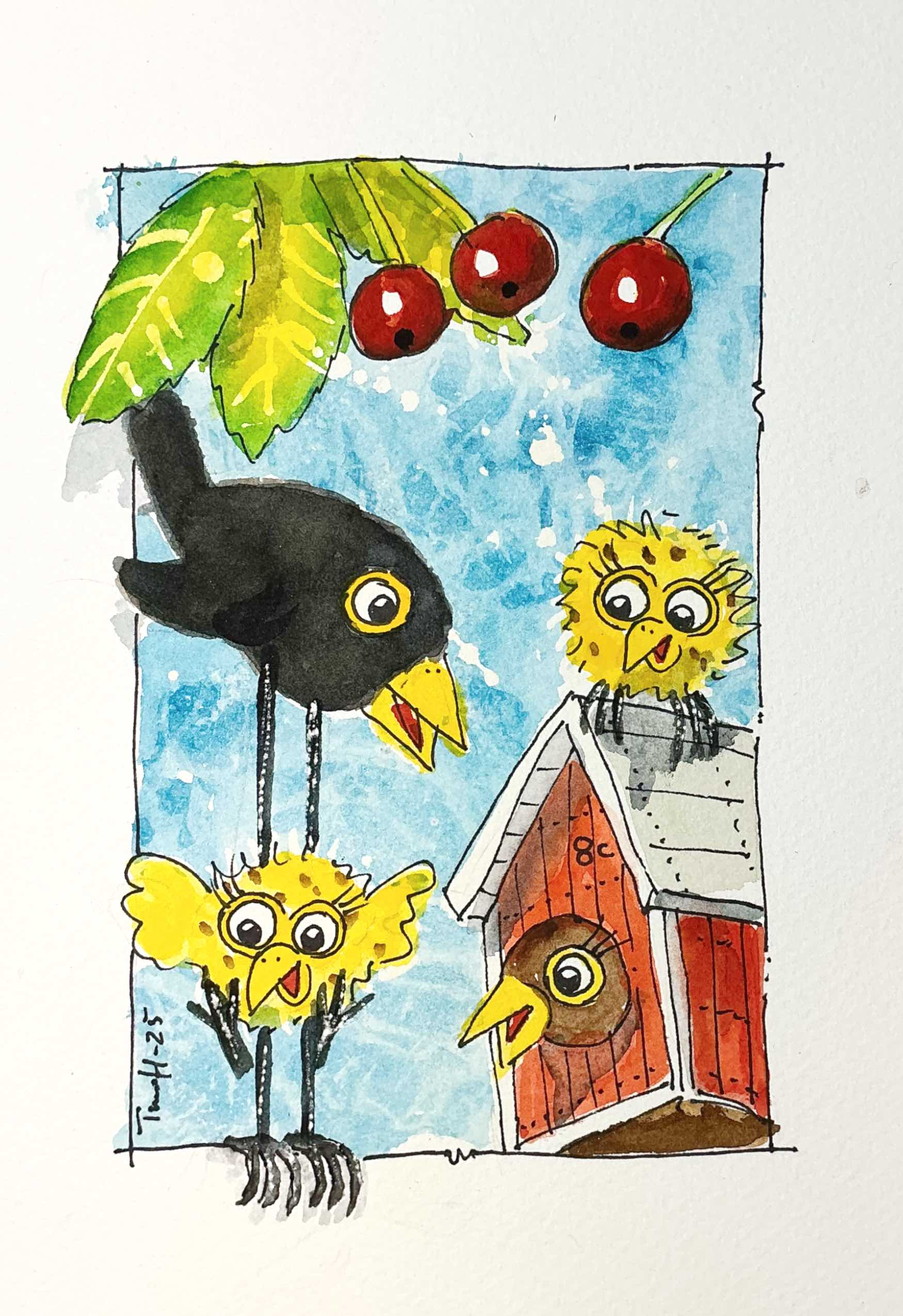 Långa farbrorn hälsar på, akvarell 2025 av Timo Horne